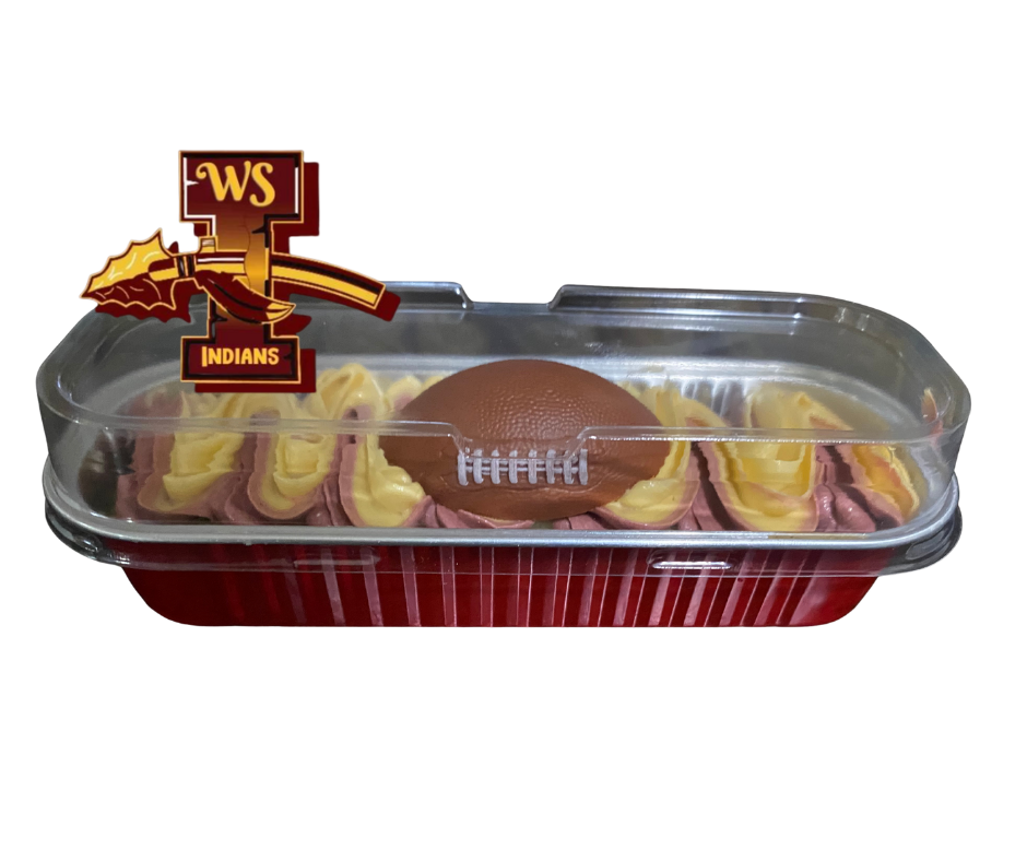 Celebrate team spirit with our Tiny Indians Cake — a soft white cake topped with smooth vanilla buttercream and finished with a bold gold and maroon swirl. With every cake sold, $2.50 goes directly to support the Tiny Indians Pop Warner football team, making each bite a win for you and the team.